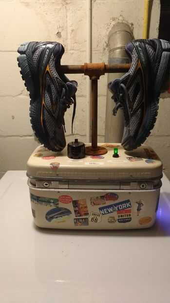 Aquí es el proyecto solos y en acción secado mis zapatos. La unidad está enchufada a otro proyecto que hice que contiene un temporizador y una toma de corriente. Generalmente ajuste el temporizador para una hora. Recomiendo que uses algún tipo de contador de tiempo también para la seguridad. ¿Funciona? En realidad sí. Espero que disfrutaron de esta compilación y me encantaría oír de usted si usted hace y modificar esto! Construir!