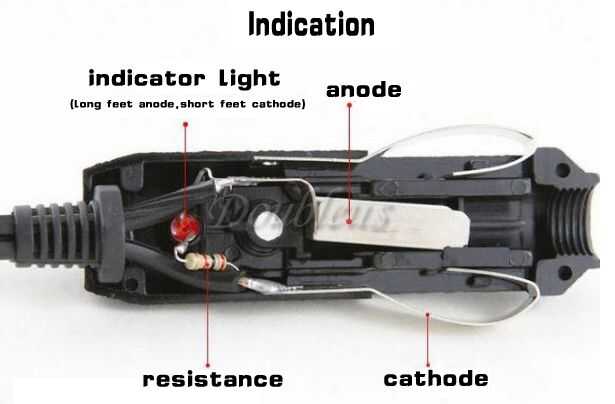 Su enchufe del alumbrador del cigarrillo podría venir con un LED y resistencia para servir como un indicador, que caso la pata larga del LED va al ánodo con el corto a la resistencia y de la resistencia al cátodo.