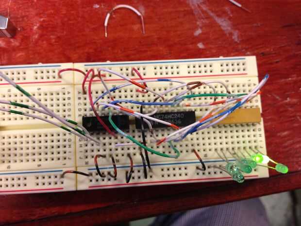 El 74240 puede ser algo difícil de conectar, pero ser sistemático y seguir mis cables de colores. No olvide conectar el GND al pin #1 y #19, que no está habilitada la salida.