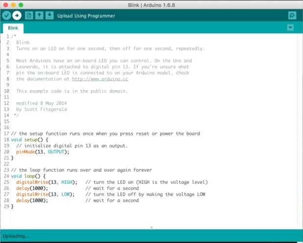 Ahora, podemos cargar hasta un simple código en el IDE de Arduino (que se supone que han modificado según la placa).