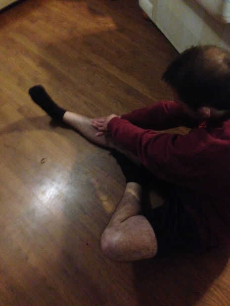 a) encontrar un lugar cómodo en el suelo y extender una pierna hacia afuera, con el interior otros doblado para formar la base de un L forma.