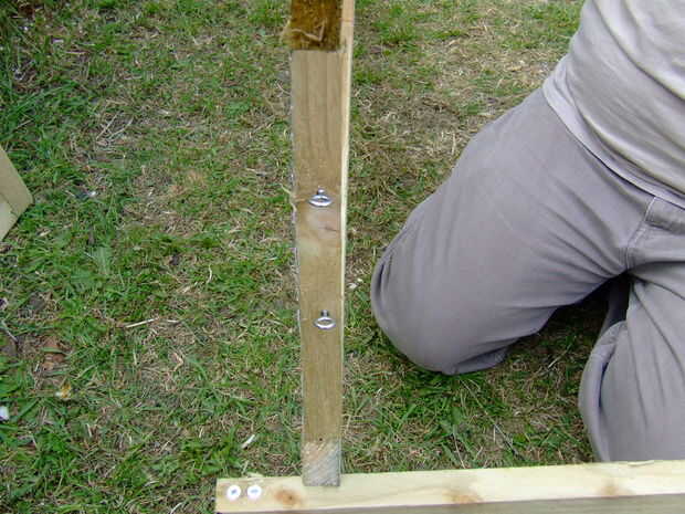 Una vez que se han montado su lados y extremos ahora puede fijar las secciones con los ojos de uno mismo tapper, entrenador pernos y tuercas.