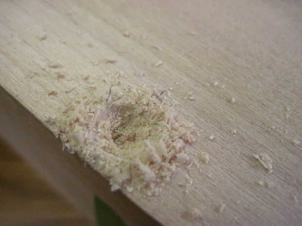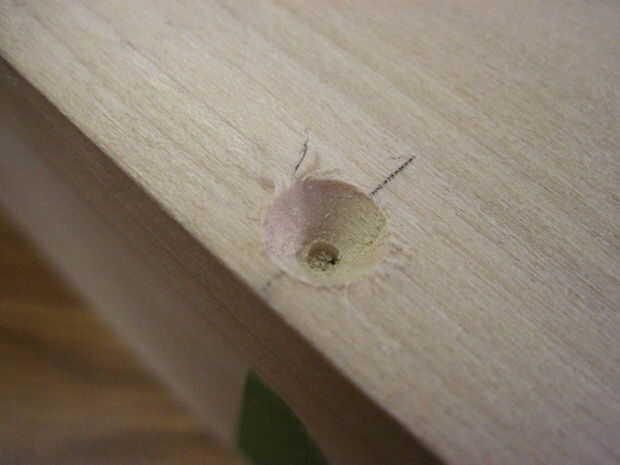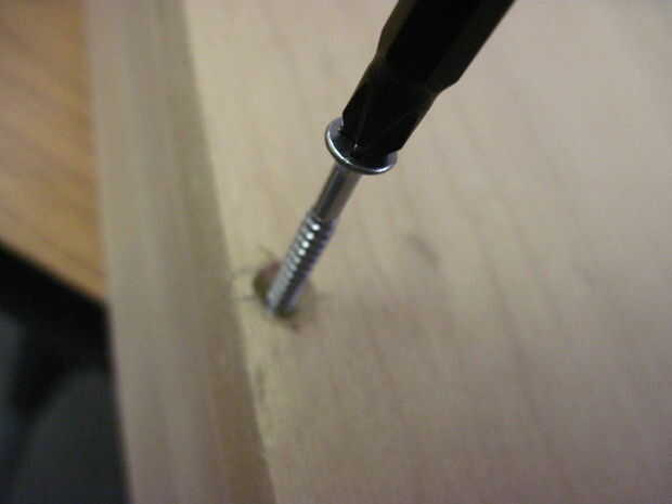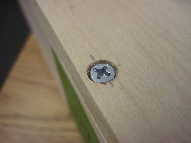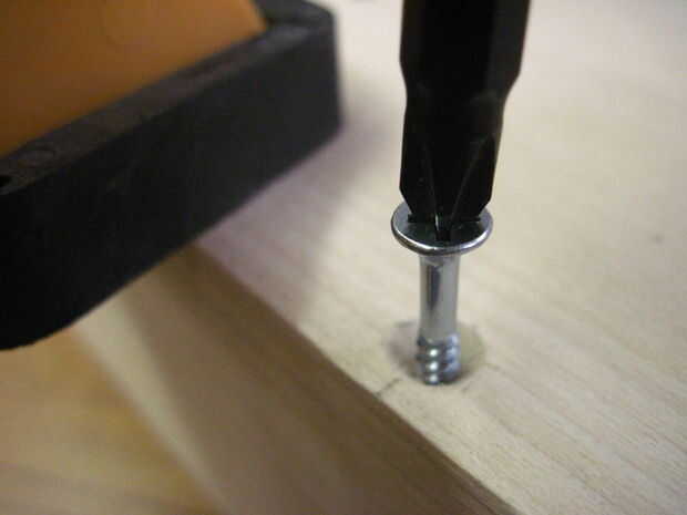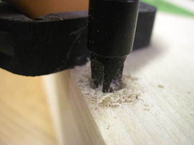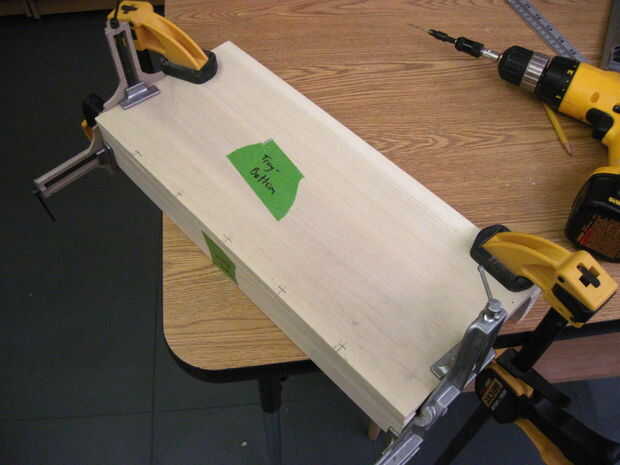 Comenzar por 5 hoyos en la parte inferior de la bandeja 1/2" en y espaciadas 2-3/4" aparte en los lados largos de la marca. Una vez haya terminado, limpie el pegamento en la parte inferior de la parte delantera o la bandeja trasera, la pieza en y agregar las abrazaderas de esquina. Voltee la pieza toda bandeja para perforar y poner los tornillos. Repetir este proceso para el otro frente o detrás de la pieza.