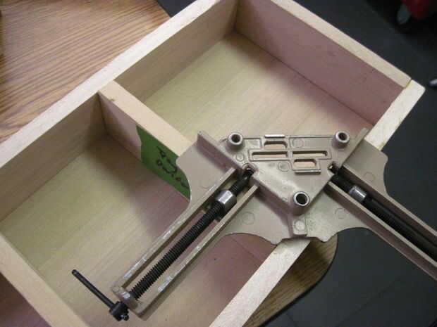 Eso es un montón de marcas, ¿EH? Lo se pronto se perforación les todos! Pero primero, vamos a golpear sobre pegamento en 3 lados de una de las piezas del "lado de la bandeja" y vamos a colocar la abrazadera lateral, de esquina y taladrar las 5 marcas y enroscar los 5 tornillos. Repetir este proceso en el otro extremo de la caja de herramientas.