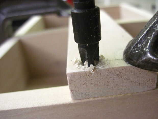 Ahora ponemos en un divisor que se pega en 3 lados, en uno de los lugares que ha marcado en la parte superior. Trate de conseguir en la abrazadera de la esquina al menos una y perfore todos los agujeros y tornillos. Ahora completa el otro divisor de la misma manera.