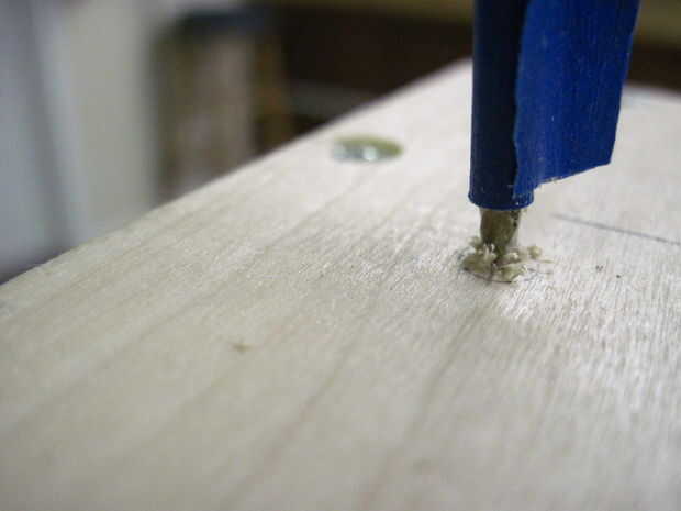 Perforación de los agujeros es muy fácil. Vamos taladro hacia fuera y rellene el cuadro de lo contrario hasta el final, donde vamos a instalar el hardware. En primer lugar, poner un trozo de cinta sobre la broca de 11/64 que es 3/8". De esta manera usted sabrá Cuándo dejar de perforación, por lo que no va a crear agujeros feos en los laterales de la caja.