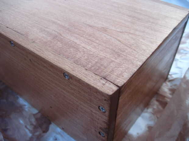 Una vez que la caja de herramientas y la mancha fuera, agitar la lata de mancha vigorosamente para asegurar que el contenido se mezcla bien. Si la mancha no se mezcla correctamente, el acabado va a salir muy débil y requiere más capas para conseguir un acabado cerezo. Abrir la lata con el destornillador. Mojar el trapo en la poder de tinción y conseguirlo realmente empapado con la mancha. Deja una gruesa capa de mancha sentado en la madera como usted limpiar el trapo en las piezas de la caja de herramientas. De hecho, debería ser una capa de líquido visible encima de la madera, como limpiar el trapo a través de él. Deje esta capa en la madera de unos 5 minutos, a continuación, asegúrese de limpiar con el trapo. Después de eso, pasemos a los lados o la parte posterior de la caja de herramientas. Una vez terminada la primera capa, soltó el aire de la caja de herramientas en un área bien ventilada.