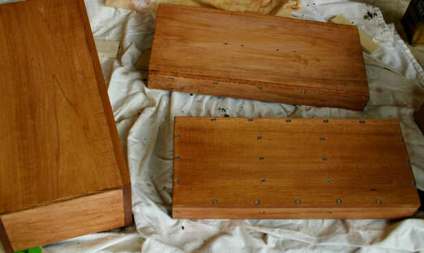Antes de hacer cualquiera de los acabados, me gustaría advertir nuevamente que el poliuretano contiene hidrocarburos alphatic (al igual que tinta base aceite), que pueden causar lesiones permanentes en cerebro y sistema nervioso. W ork fuera o en un área bien ventilada. Además, no olvide usar guantes de látex o de nitrilo. Una vez que han puesto poliuretano en la caja de herramientas, te recomiendo lavarse las manos sólo para estar seguro.