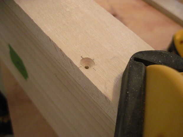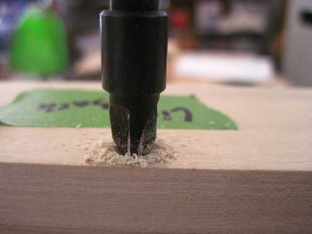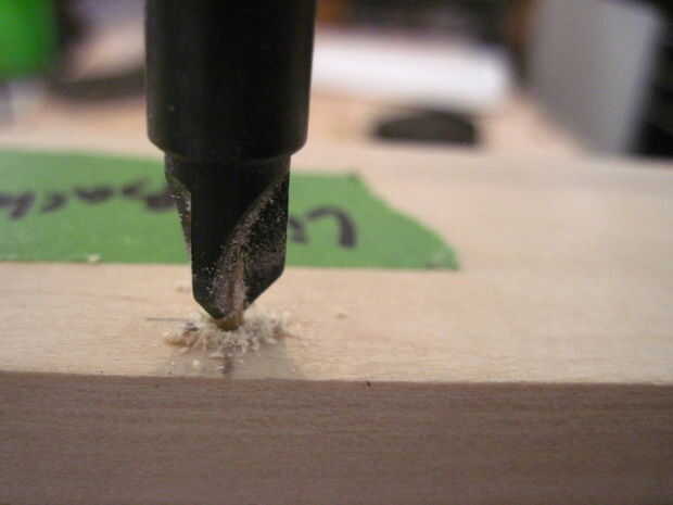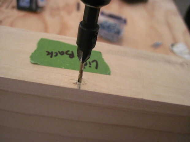 Los 5 orificios avellanados deben 3-1/4" aparte de uno al otro y 1/4" en el frente y espalda. Una vez que han sido perforados, poner los tornillos y repita el proceso para el otro lado.
