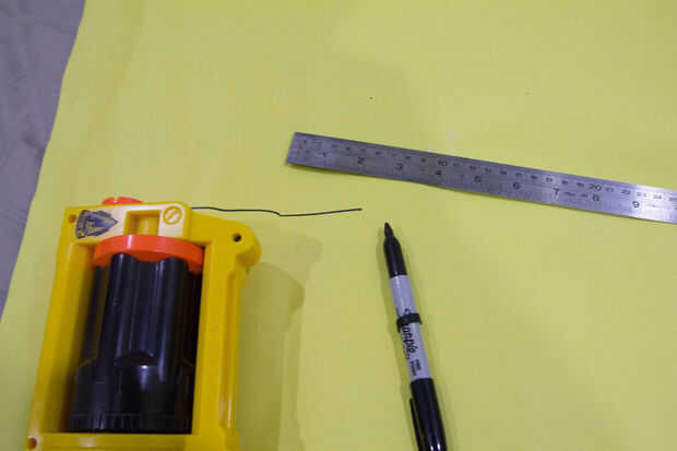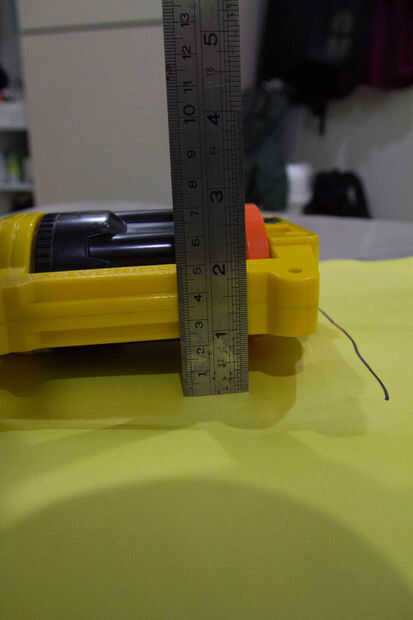 Ahora, por un pequeño margen para ajustes, vas a agregar las medidas que aparecen en la última foto a la frontera. Esto será no sólo un vínculo más fuerte entre las superficies (más material etc.), sino también ayuda a da un mejor ajuste para su blaster.