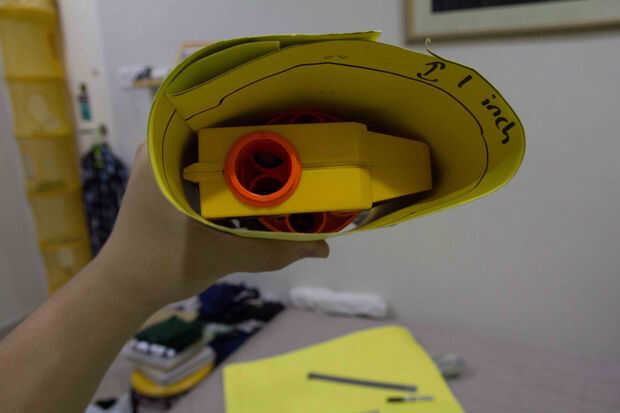 Ahora si eres como yo, como el blaster para mover un poco para que te haga estallar hacia fuera más rápidamente. Esto es donde entra este paso. Con un par de tijeras o una cuchilla, corta las cuatro esquinas, como se muestra en la imagen. Para un mejor agarre, mantenga presionando la funda a los lados de la sala revólver.