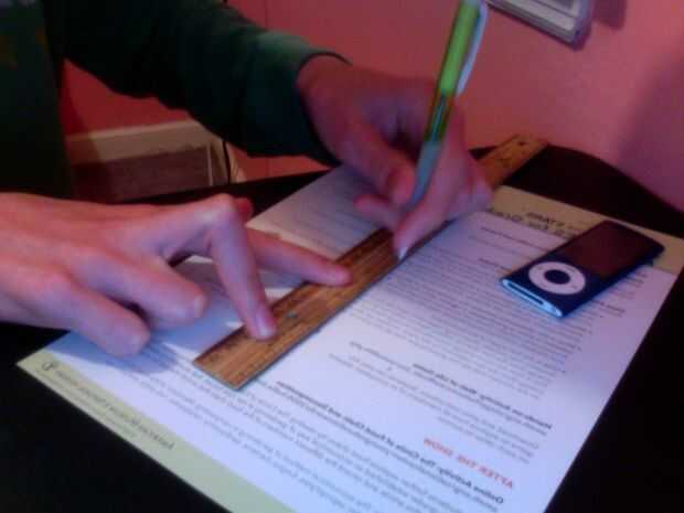 #2. Manteniendo la regla con la otra mano, trazar una línea en el papel a lo largo de la regla.