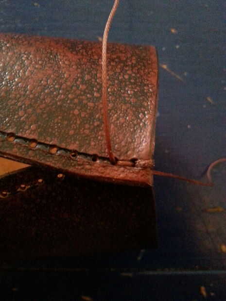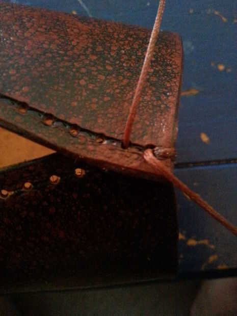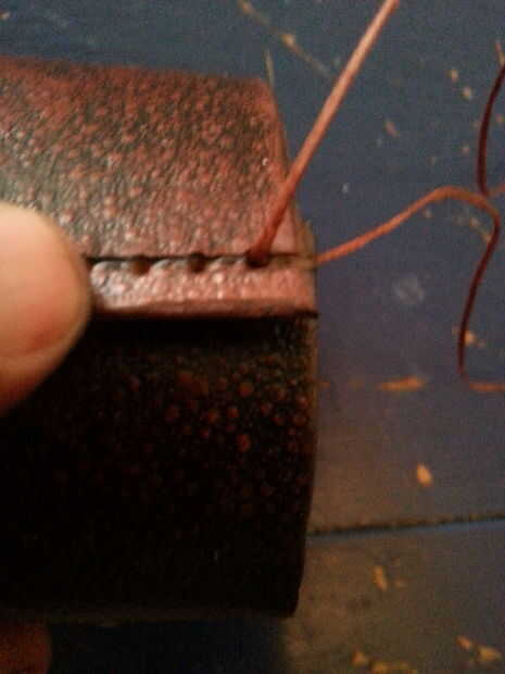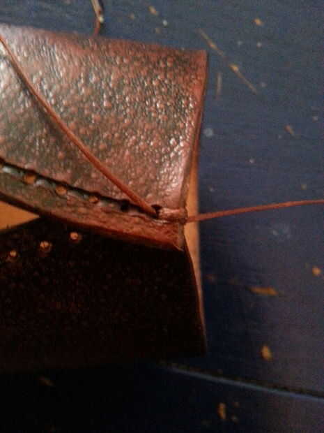Usted puede elegir el color y el tipo de hilo que quieres usar para que coincida con su proyecto. Yo siempre uso acorde trenzado encerado. Esto es lo más fuerte que puede utilizar para unir su cuero. Elegí "Moho" como mi color.