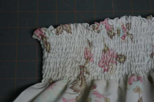 Encuentro hacer 10 líneas, cerrar costuras (si puedes) cada línea al principio y al final. No intente cortar las roscas hasta que termine. Sólo mover el pie prensatelas hasta la siguiente línea y puntada de la cerradura, coser todo el camino alrededor y luego puntada de la cerradura otra vez. (Si un fumador más, tratar de 15 líneas en la parte superior... o sólo un poco de fruncido en la parte superior con un tipo más princesa mirar, hacer sólo 5 líneas. Es un patrón muy versátil).