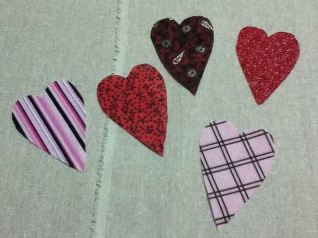 tamaño. (también puede cortar una de papel y usarlo como plantilla, me gusta simple por lo que acababa de usar la tela) Con ese corazón corte 4 más del resto de sus telas de desecho.