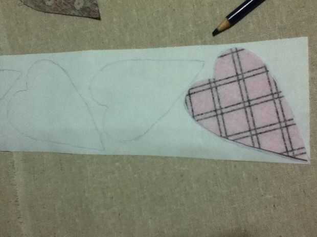 Corte una tira de calor n enlace un poco más ancha que sus corazones. En el lado de papel del calor n enlace de seguimiento de cada corazón.