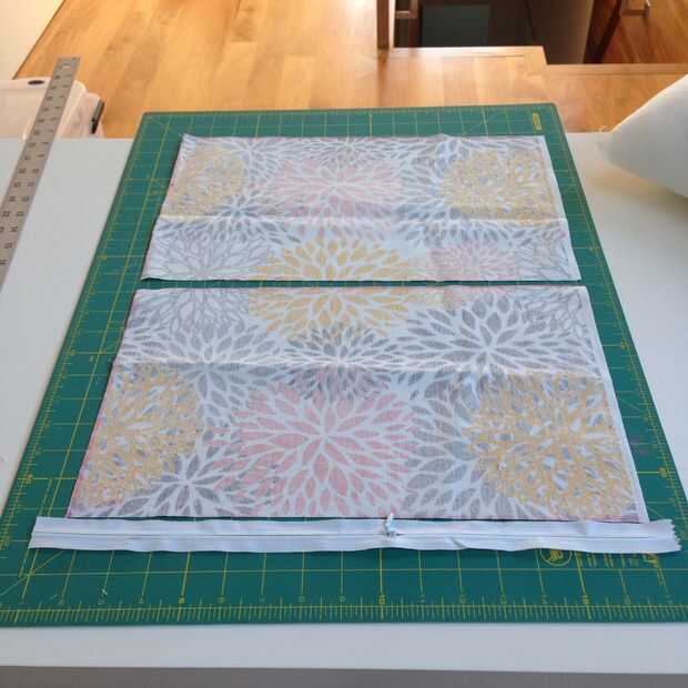 Corte su cremallera y pulgada extra en cualquiera de los extremos. Decidí poner la cremallera en el extremo más largo de mi almohada.
