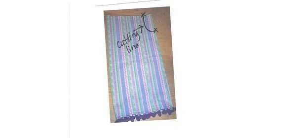 Dibujar una línea curva para conectar los 2 puntos marcados. Se corte ambas sisas con un corte para que sean exactamente lo mismo. Corte en la línea de corte a través de todas las 4 capas de tela.