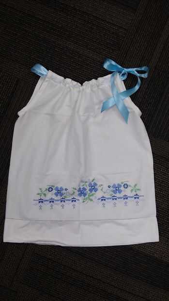 Me encanta hacer vestidos bonitos para mi nieta. Me encontré con una hermosa funda de almohada bordada en una tienda local de antigüedades. He pagado menos de $5 por él. Este proyecto no tome mucho en todo. Es el vestido perfecto para una niña. Mi nieta tiene 4 años, pero se puede ajustar para caber a cualquier niña 2 a 5 años de edad.