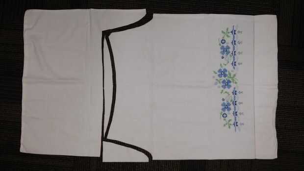 Me mide 16" de la parte inferior del vestido a la axila. He añadido otro 5" por encima de eso así que lo corte en 21". Corte de 2" en la parte superior para las sisas y el corte de una curva para el escote. Si desea hacer una funda de almohada vestido que es un poco más pequeño o más grande, ajustar por consiguiente.