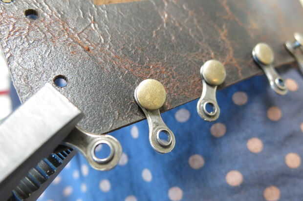 Envuelva la cuerda alrededor de la parte inferior de la boca y tomar ambos extremos y ponerlos a través de los orificios restantes y un pedazo de cadena de bici.