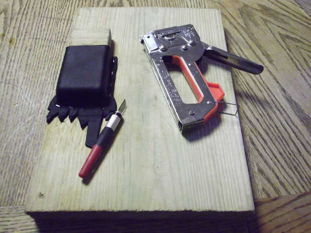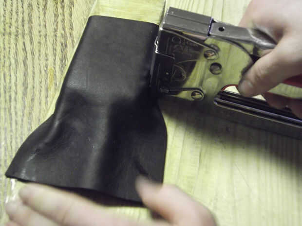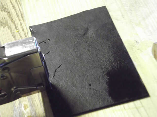 (Nota: en caso de que se lo pregunte, no engrape el cuero en la mesa, pero que tenía un pedazo de 2 x 10 debajo. :)
