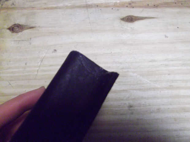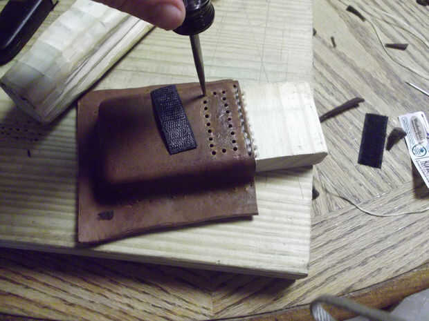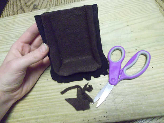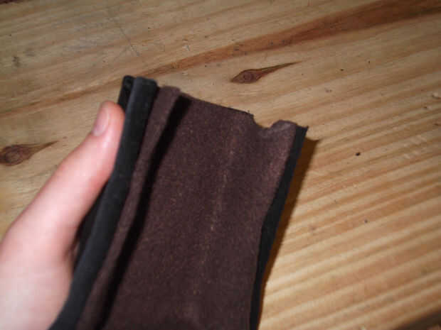 Una vez que la pieza de paño grueso y suave ajuste suavemente en la pieza de cuero moldeado, cuidadosamente cemento en el interior de la pieza (Asegúrese de que los semicírculos aún coinciden). Luego cortar el exceso.