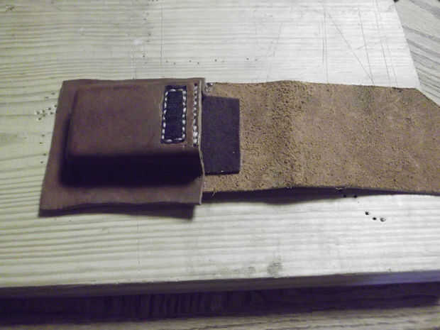 Si utilizas velcro como cierre para su caso, usted necesitará puntada sobre el caso antes de pegar el paño grueso y suave. Si no, salte esta parte. Cortar la pieza de velcro que uso (una tira de 2'' de ¾''-anchura velcro es buena), uso cemento de contacto para pegarla donde usted lo desea, marcar tus puntadas, perforar sus orificios y puntada de silla de montar las piezas.