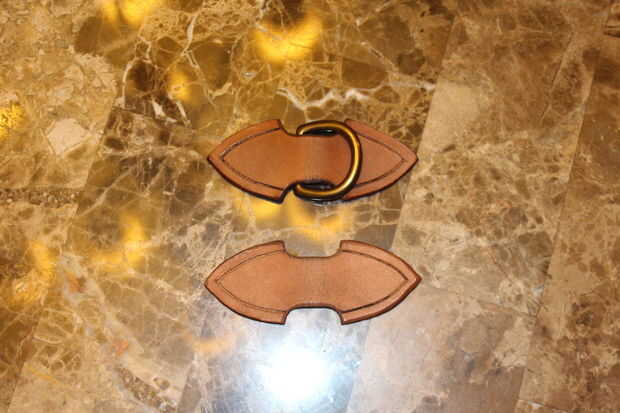 Por último, necesita hacer uno o dos billetes. Estos son pequeños escudos de cuero que tienen anillas. Los billetes son para añadir anillas a la parte superior e inferior del carga para hacer más fácil a la plataforma de un tahalí u hombro. Si no se lleva esto en cualquier lugar y sólo van a colgar en una pared puede sólo necesita uno hay un punto de accesorio fácil para colgar.