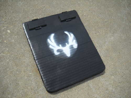 Ahora pinte el color de su elección. Me gusta el negro. Más tarde diseñará el cráneo de ciervo hueso colector en él, causa como caza. Una vez su pintura hecha, podrás usar su propia funda de cartón.
