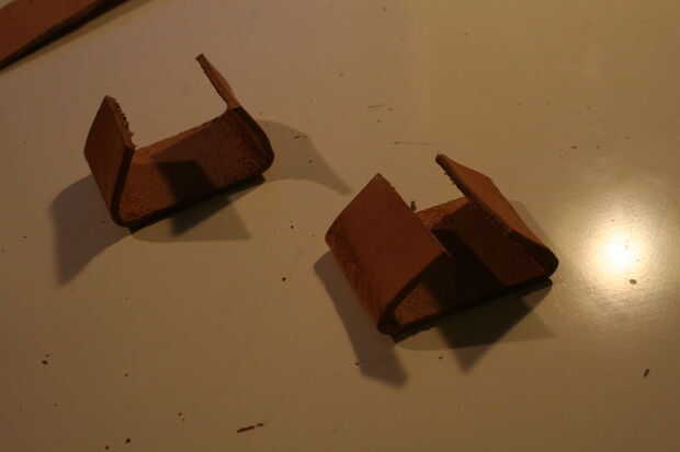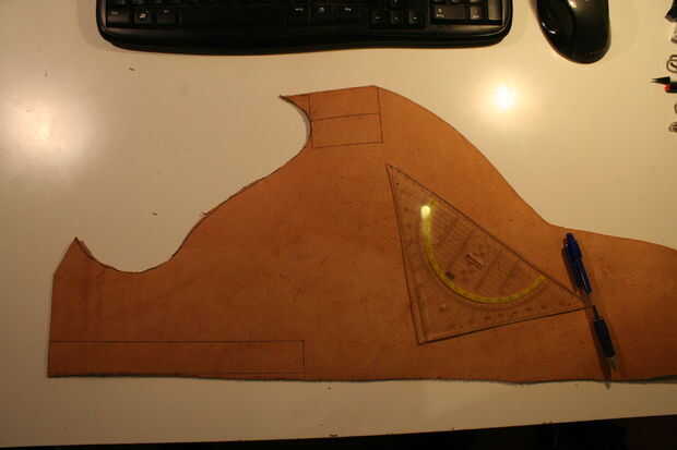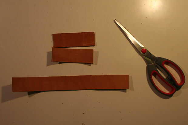 Cuando dio cuenta de sus medidas, mira el pedazo de cuero y encontrar el mejor lugar para cortar sus piezas fuera de él. Usé una tijera antigua para eso y trabajó realmente agradable. Después de cortar el primer trozo de cuero, doblar (sólo apreté los bordes muy duro) como se muestra en el cuadro 4 y deslícelo en su cinturón. ¿Concuerda? Si es así: bien hecho! Si no: es demasiado grande no hay problema, pero demasiado corto es. ;)