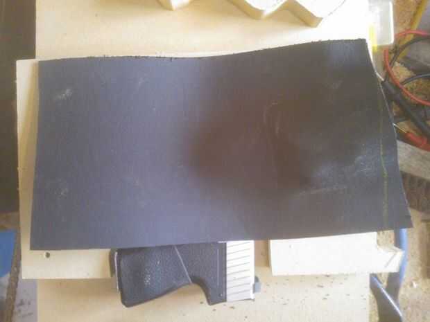 Cortar una pieza que es más grande que lo que se necesita en un 20-30%. Recuerde que para comenzar con, el kydex es plana, pero después de formarlo, habrá un 3d de la forma y que se tire de los bordes un poco, así que asegúrese de que dejar espacio extra.