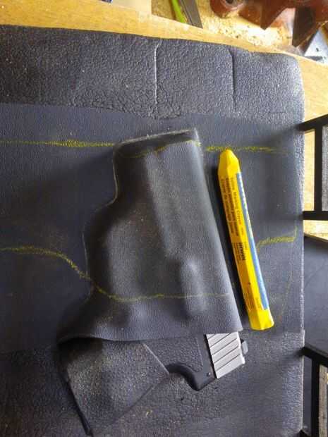 Use la Sierra de calar para recortar su contorno. Asegúrese de reducir la velocidad al llegar a áreas que son más verticales porque estará cortando mucho más material que cuando usted está cortando justo en el piso (ver foto #2). Reducir la velocidad un poco para asegurarse de que no soy un recalentamiento y fusión el kydex.