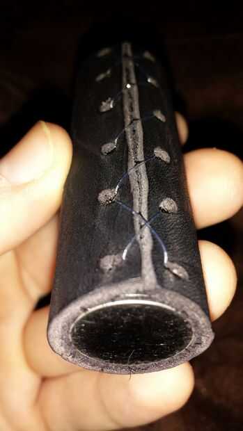 Después de que se haya decidido por su agente, los agujeros todavía necesitan ser perforado hacia fuera. Con su cuero punch hace los agujeros hacia abajo cada lado, no es necesario para el pegamento si decides en :) Utilicé el tamaño más pequeño en el punzón ya que he usado sedal. Utilice el tamaño del agujero que funciona bien con el ATA.