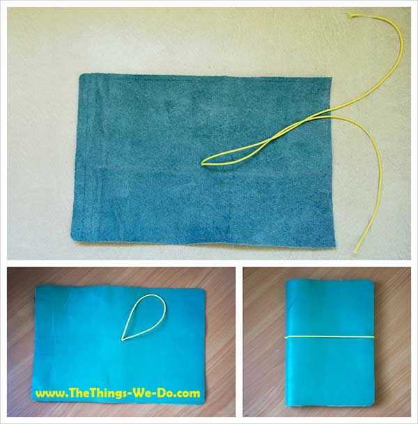 Corte aproximadamente 11 pulgadas (26cm) de elástico, doblar por la mitad y poner a través del orificio. Usted tendrá un lazo de elástico en la parte frontal de la pieza de cuero. Ajustar el tamaño de un lazo y un nudo en los extremos de elástico para fijar el lazo.