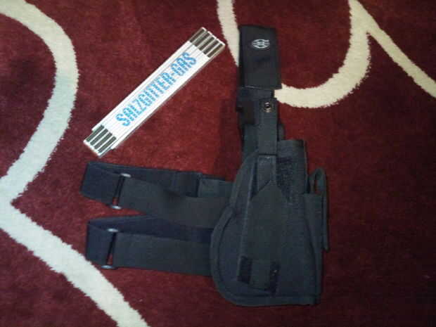 Corte costura posterior de la funda (ver foto). Coser en correas elásticas. Deben ser un poco más pequeña y la anchura de la Hammershot para mantenerlas en tensión cuando la pistola está en la funda. Sólo en cosa. No se olvide la correa inferior para evitar que la pistola caiga a través de la funda.