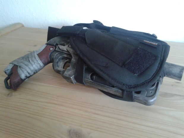 Las correas pueden hacerse de tiras de Velcro® tener la funda adaptable a otros blasters.