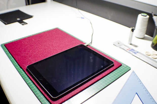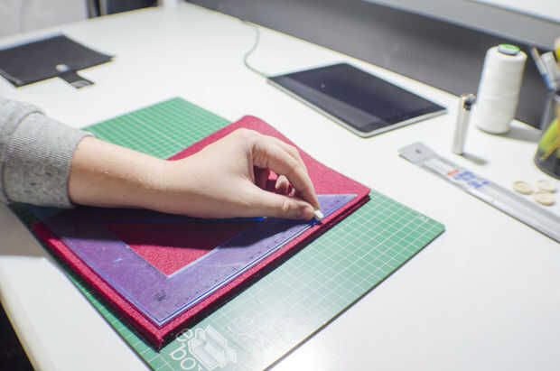 Dejamos aproximadamente 1, 5 cm desde el borde de la tableta al borde del fieltro.