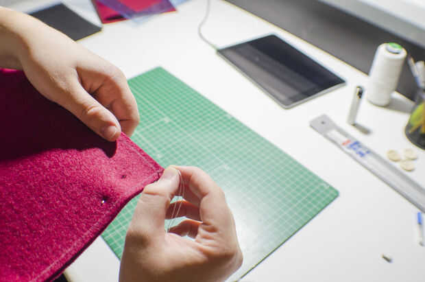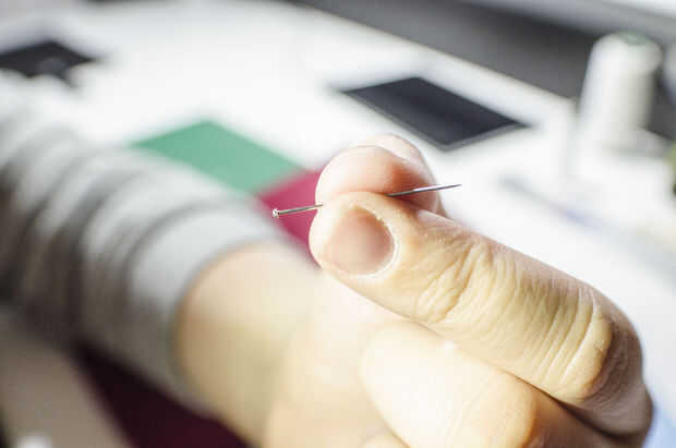 Usamos hilo doble y su medida será de 7 veces el lateral a coser.