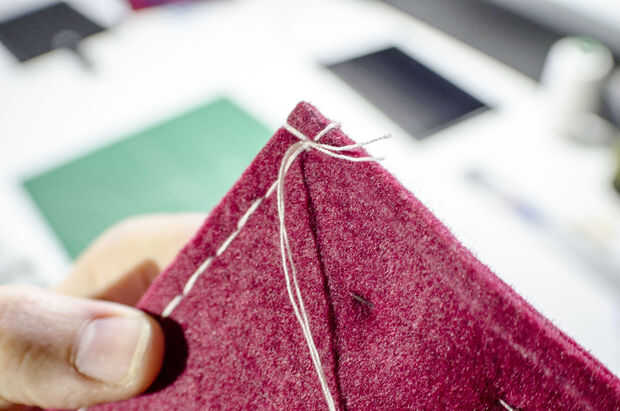 En las esquinas pasamos el hilo por la zona exterior de manera reforcemos esta.