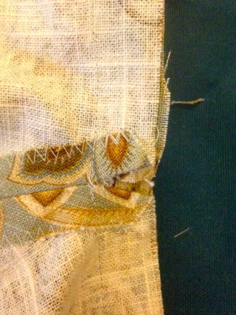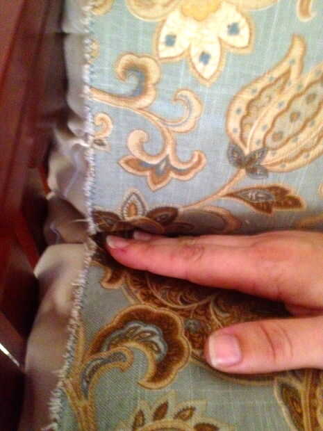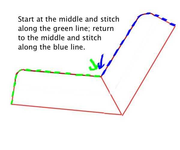 Dos cosas que ayudaron en este proceso - abrió aproximadamente 1/2" de la costura en la esquina interior de las piezas laterales por lo que era más fácil coser a la pieza principal. También, al coser la pieza principal alrededor de las curvas en los extremos de las piezas laterales, hice 1/2" cortes a lo largo el borde plano para mejor ajuste a la tela alrededor de la curva.