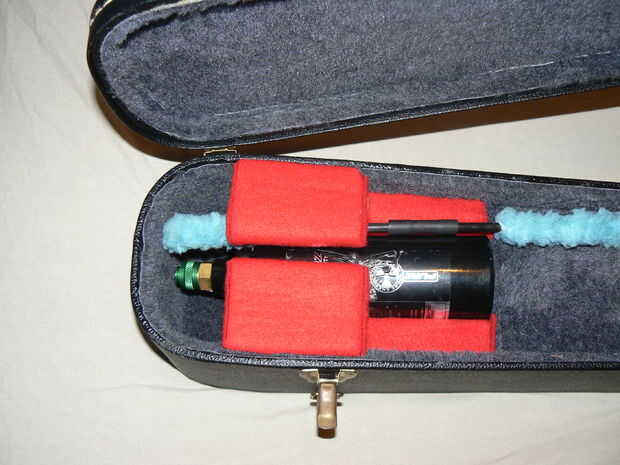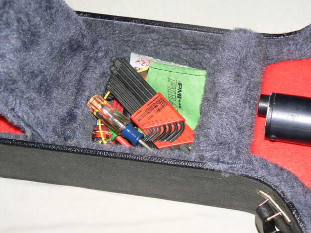 -Para impedir que mi arma se cambio, corte un pedazo largo del rectángulo de la espuma sobrante. La pieza se aferra estáticamente a la guarnición furry del caso.