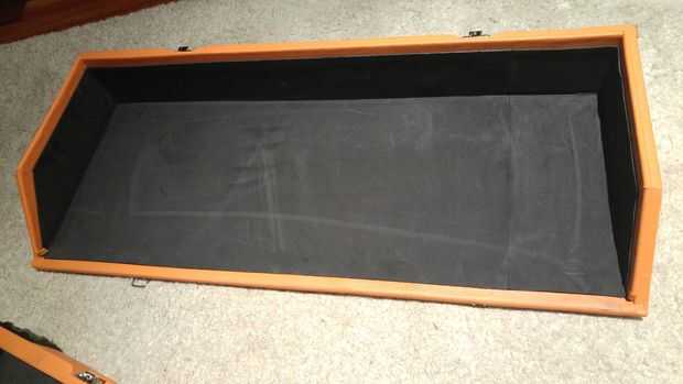 Para cubrir los lados interiores he usado espuma E.V.A. negra (también conocida como espumoso). Es muy elegante, muy fácil de cortar en formas y pegar con pegamento de contacto. No es heay así como algunas alfombras como telas y más fácil de limpiar y suave, así que protección adicional de anuncios.