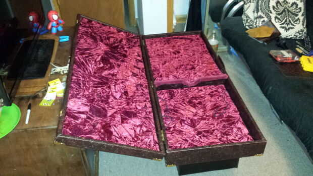 yo estaba vagando en una venta de etiqueta de un día y encontré una vieja funda de guitarra de conglomerado, que parecía el candidato perfecto para una mesa de inusual.  Entonces, me dirigió a mi tienda con mi compra de $5 y se puso a trabajar.Paso 1