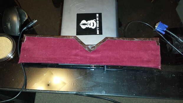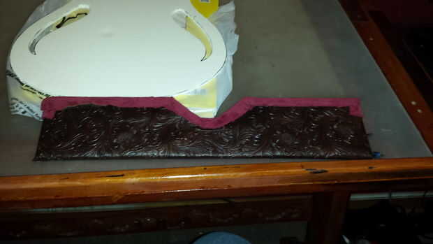 4. Envuelva la pieza en su material de la guarnición; Si usted corta derecha, usted puede conseguirlo para no mostrar ninguna costura (la parte inferior será entre 2 piezas del amortiguador, así que ocultar su trabajo)