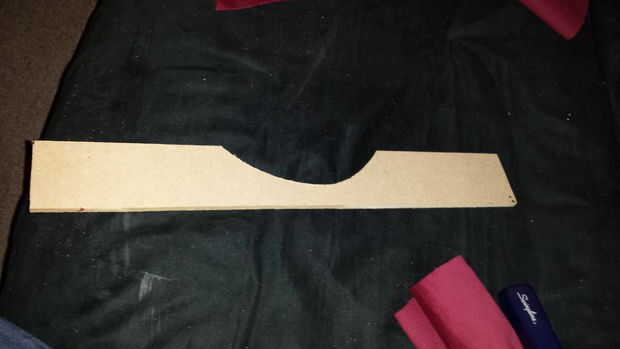 6. Recorte la pieza de manera que cuando se colocan en el borde superior de la ayuda del cuello y siguiendo la curva, hay aproximadamente 1 1/2" bajando por el lado del soporte