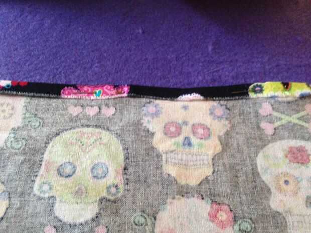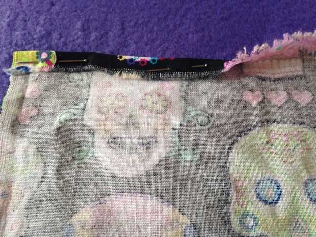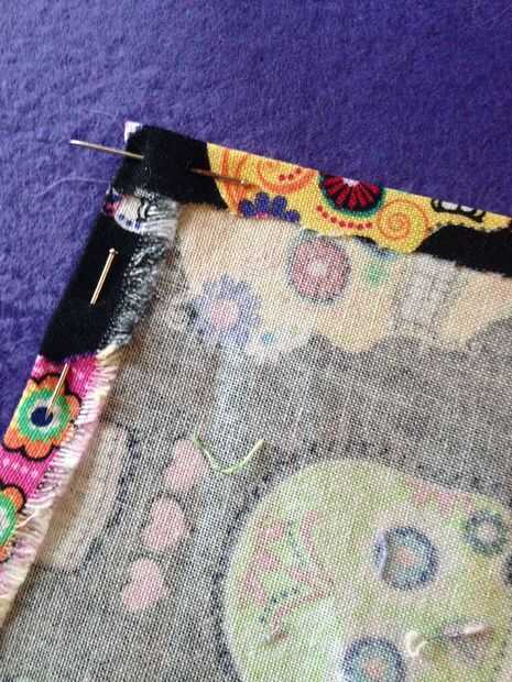 A continuación dobla a la derecha de los bordes de la tela de cráneo aproximadamente 1/4" en el lado equivocado y cubrió y planchada como he trabajado mi manera alrededor de toda la pieza de tela. Fijando y tabla de planchar (es hemming aún si se trata de una prenda de vestir?) mantienen los bordes crudos de demostración.