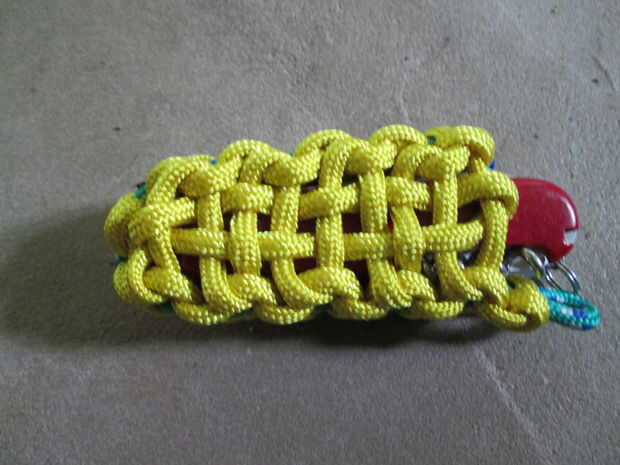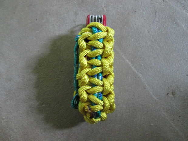 Todo el mundo ama a envolver cosas en paracord ahora tienes razón práctica. Todo lo hice fue envolver una correa de ajuste de nylon de 6 pies en 100 pies de paracord utilizando el nudo básico "cobra". Ajusté la correa para largo antes de embalaj