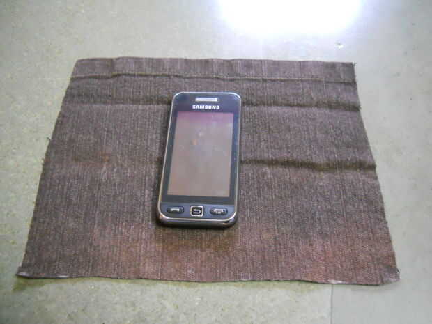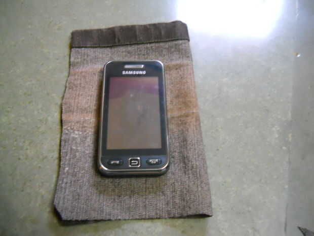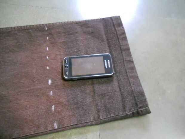 cortar un trozo que tienes material de 2 pulgadas por encima de su teléfono y 1 pulgada por debajo en altura