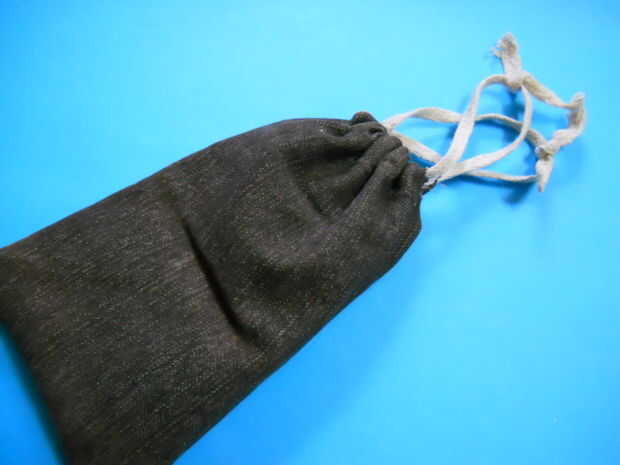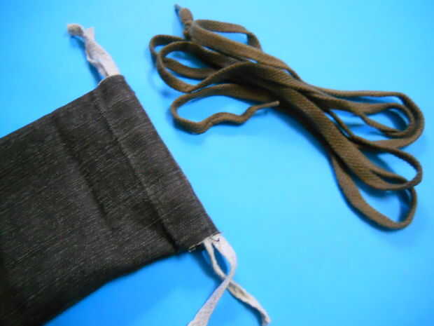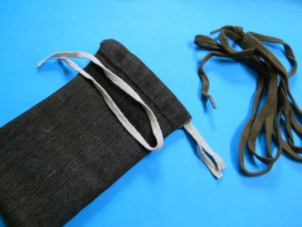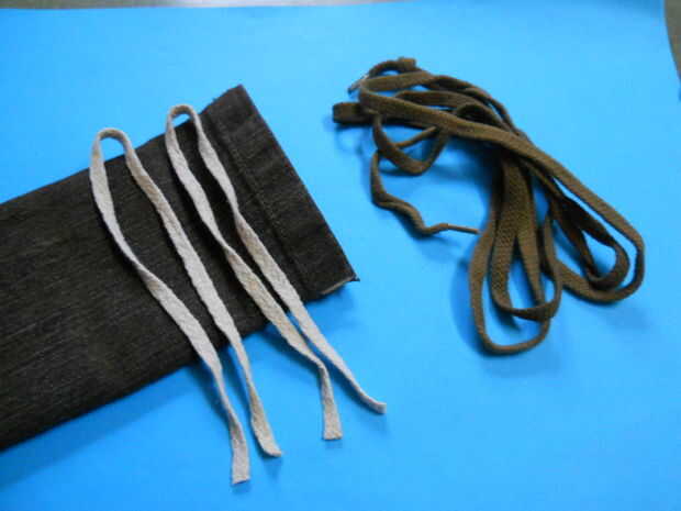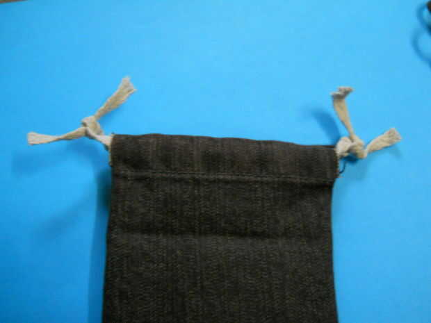 Cuando usted tire estos nudos (con el cordón de ambos lados) la bolsa cierra (esta técnica obras buenas con telas de pantalones de mezclilla fina/fina)